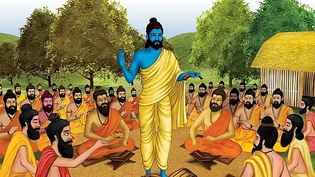 By the time Ved Vyasa was sixteen, he was a person of towering intelligence. Until this time, the Vedas had been transmitted orally from one generation to the next because the rishis understood the importance of sound and how pronunciation was critical to Vedic transmission. When the Gangetic plain went through a drought of fourteen years, Vyasa saw people had forgotten to recite the Vedas and decided to write them down. He secured the patronage of King Shantanu, who had married his mother, Matsyagandhi, now called Satyavati. The king performed powerful practices such as the Vajapeya Yagna, Rajasuya Yagna, and Ashwamedha Yagna to cement his status as the emperor. Ved Vyasa chose Kurukshetra as the venue for the Vajapeya Yagna and used it as the opportunity to invite the most eminent sages of India to one location. He then got the Kuru Dynasty to commission a project for compiling the Vedas in a structured collection. Bhishma sponsored this project after King Shantanu’s death. Ved Vyasa assumed the role of the chief compiler, and the project went on for twelve years, thus restoring Kurukshetra to the status of Dharmakshetra.