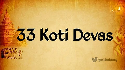 The world is not running on its own. The one seer who is unmanifested, first manifested himself into the play and movement and then duly allotted to the various eternal creators their respective functions. In Samhita and olden texts, they are revered as 33 divine beings (Devas) that are ordained the cosmic functions. 11 Rudras, 12 Adityas, 8 Vasus, and 2 Asvinkumaras. It is very important to understand that the highest principle, One being itself is adored here. The idea is to invoke the oneness of the divine being in apparent separateness by glorifying his manifested aspects.
