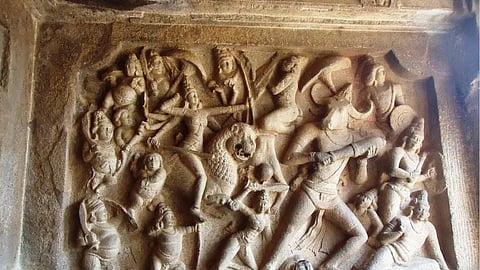 The news of their demise reached Mahishasura. Immense grief weighed him down but the thought of coming face to face with Devi raged within him. Brushing past despondence, he assumed the form of a handsome man to allure the woman who had possessed his entire being.